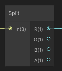 Split Node는 입력 벡터를 4개의 Float 출력인 R, G, B 및 A로 분할합니다.