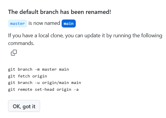 말 그대로 기본 브랜치의 이름을 바꾸는 거라 main 브랜치 이름이 마음에 안들 때, 다른 이름으로 바꿀 때 사용하시면 됩니다.