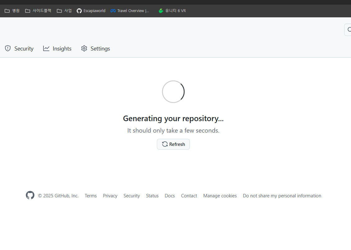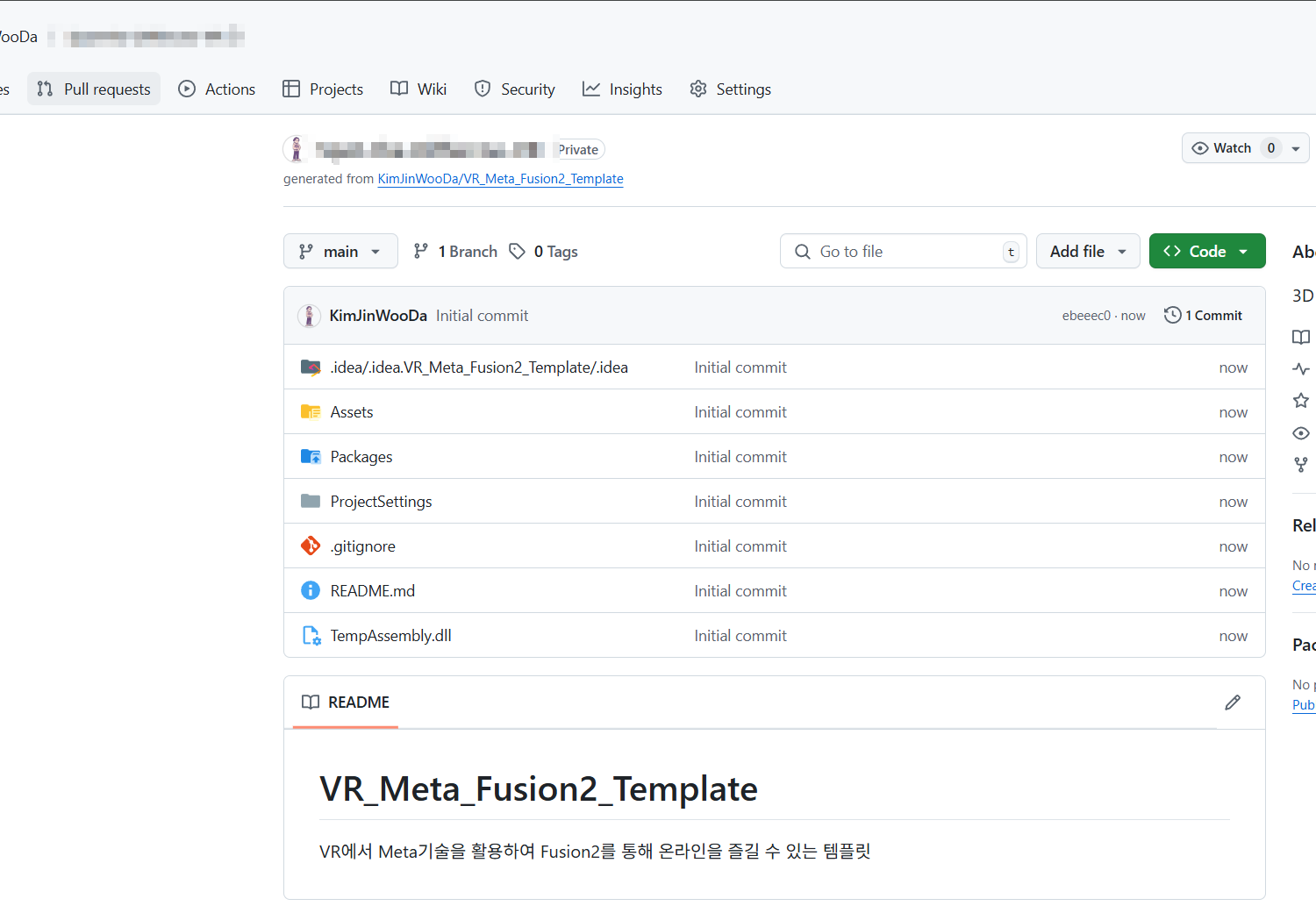 이렇게 하면 기존 템플릿의 코드, 폴더 구조, 파일이 모두 복사된 새로운 레포가 생성됩니다. (히스토리는 복사되지 않음)