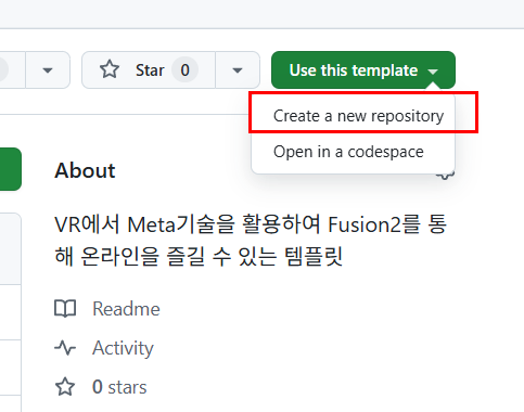 - GitHub에서 해당 템플릿 저장소 페이지로 이동합니다.