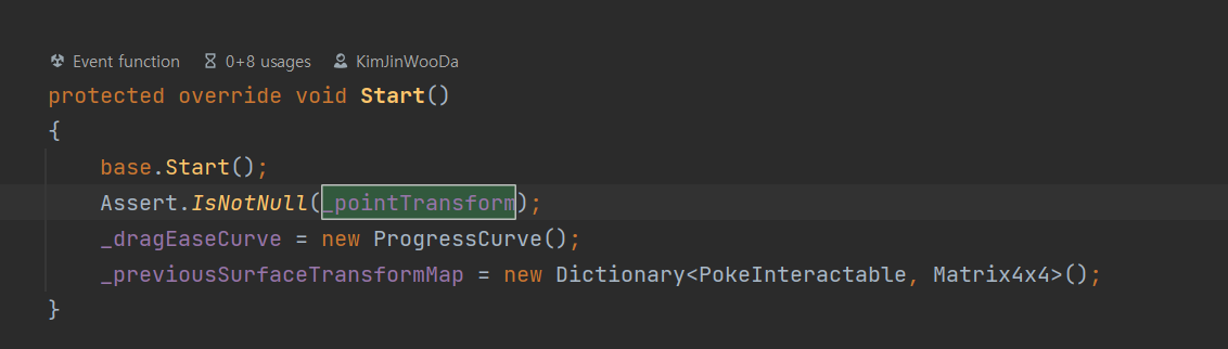 Start함수에 Assert.IsNotNull이라는 낯선 친구를 발견했다