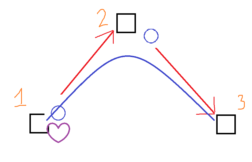 이때 보라색 하트는 첫 번째 파란색 동그라미와 두 번째 파란색 동그라미의 위치를 Lerp의 매개변수로 받아서 사용한다