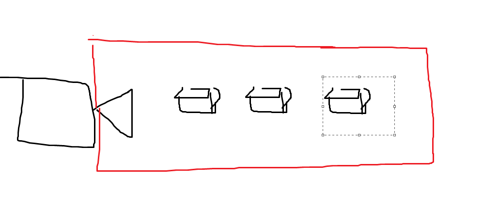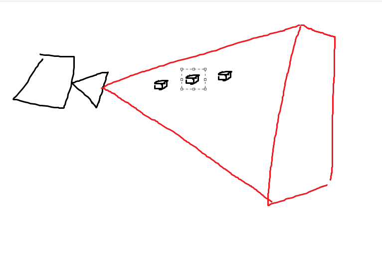 투영선(Field Of View)가 존재합니다(빨간색선)