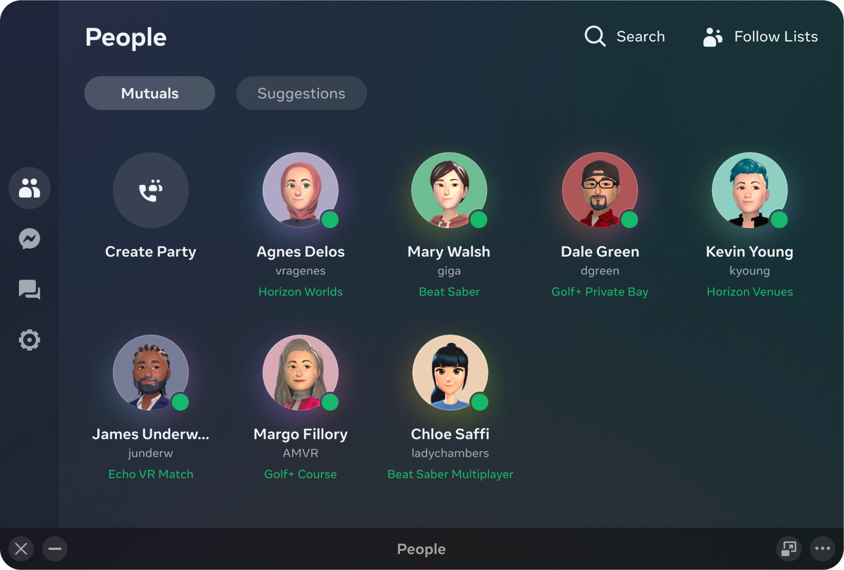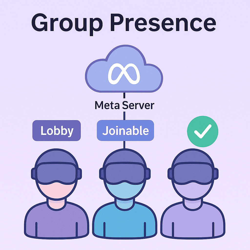 Group Presence란 Meta 플랫폼이 유저의 Destination(장소)·Lobby/Match ID·Joinable 여부를 받아서 친구 목록과 퀘스트 메뉴에 노출하는 소셜 레이어 입니다.