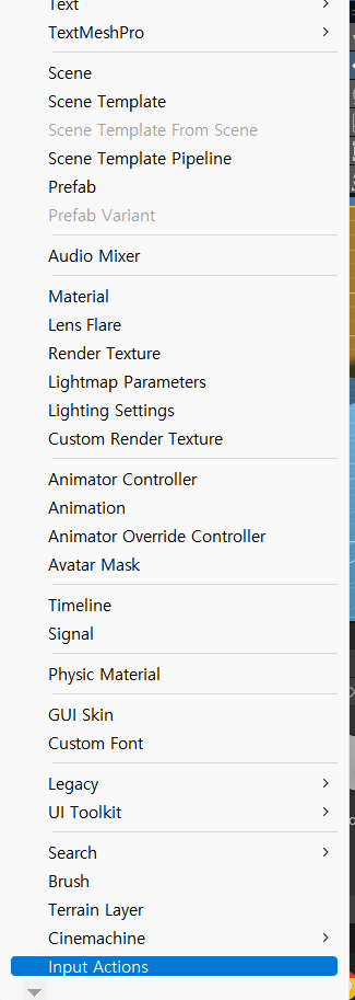 그다음 프로젝트 폴더 아래 [+]버튼을 누르고 아래로 내려가다 보면 Input Actions가 생겼을거다.