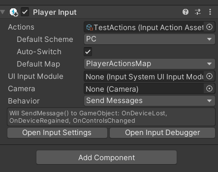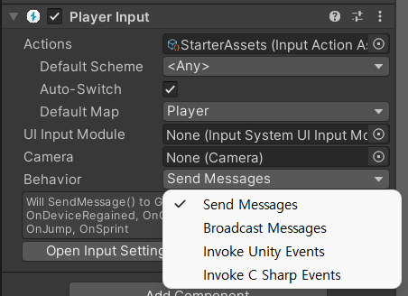 Player Input 컴포넌트를 부착해준다.
