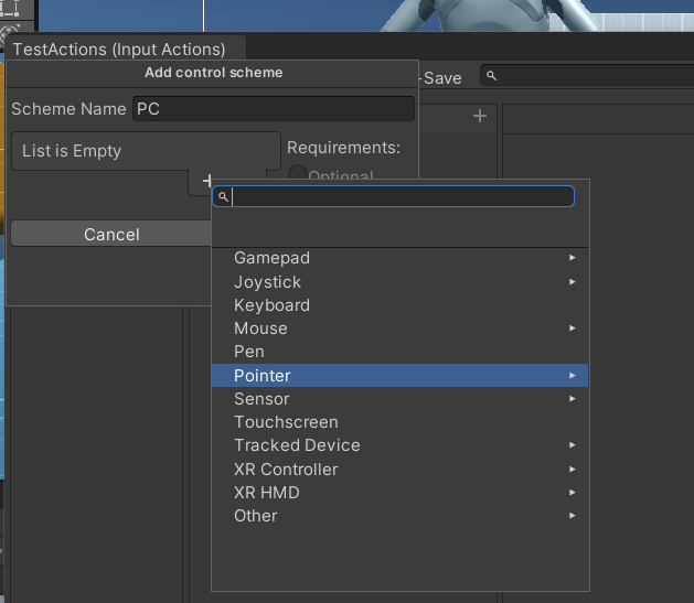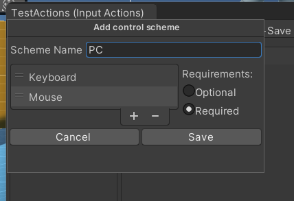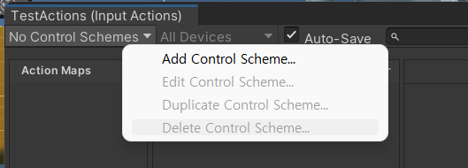 No Control Schemes를 누르면 Add Control Scheme가 나온다 누르자!
