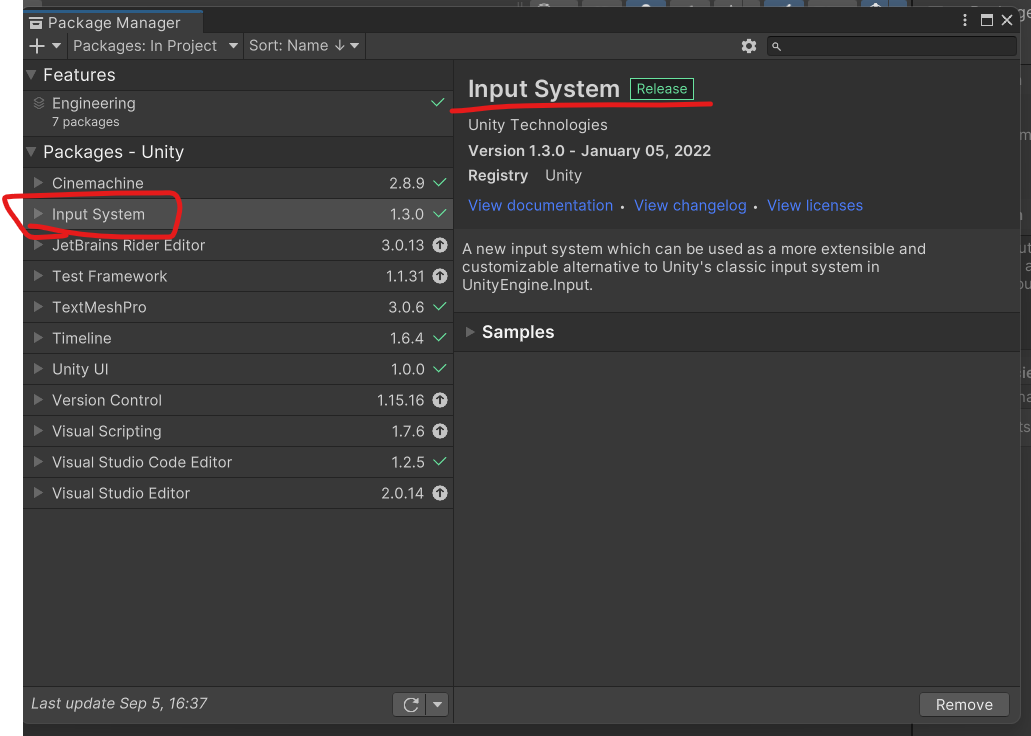 패키지 시스템에서 인풋 시스템을 임포트하자.