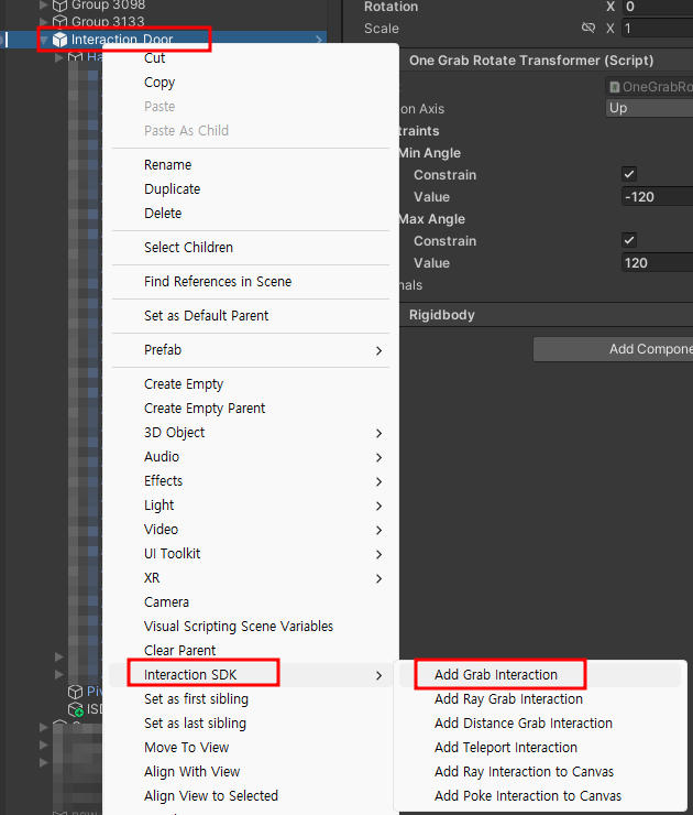 Door에 우클릭 -> Add Grab Interaction하면 자동으로 알아서 된다!