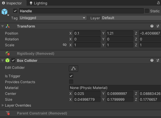 그리고 자식 오브젝트 하나 만들고 거기에 Grabbable과 Grab Interactable함께 두면 됨.