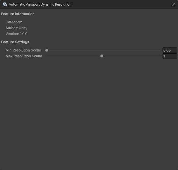 Automatic Viewport Dynamic Resolution의 톱니바퀴 버튼을 누르면 최소 ~최대 Render Scale 수치를 정하실 수 있습니다.