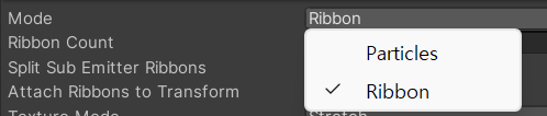 Mode는 총 2가지가 있으며 Particles와 Ribbon이 있다