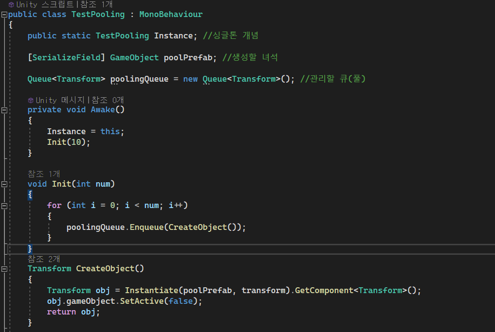 위에 예시는 Object Pooling에 대한 간단한 설명일 뿐입니다.