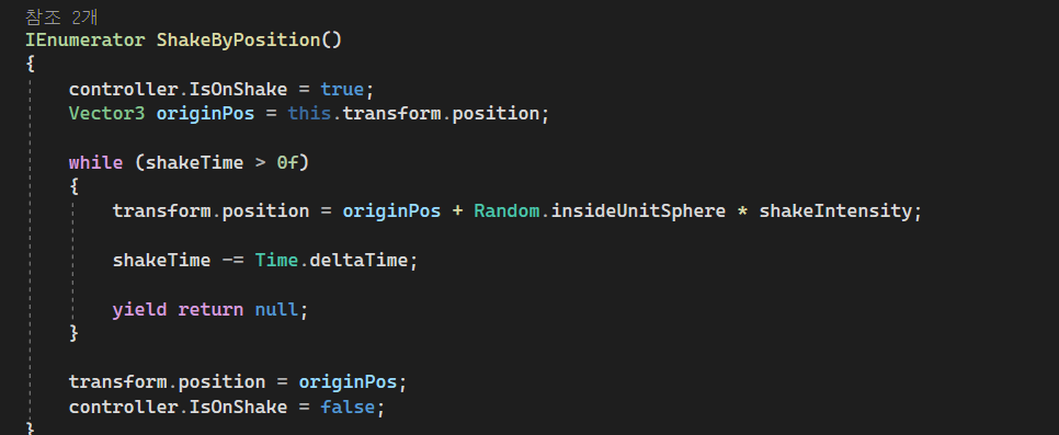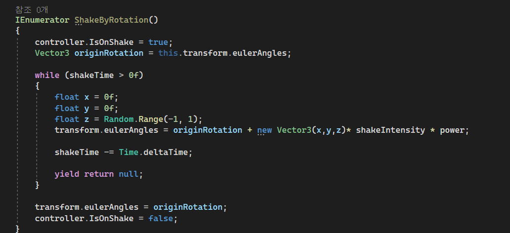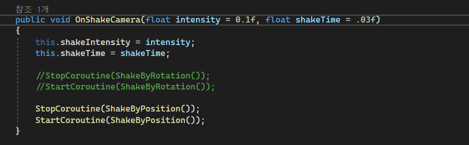 그리고 OnShakeCamera가 호출될 때마다 카메라가 흔들리게 할거야!