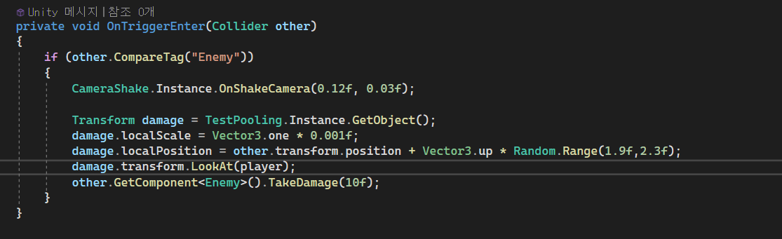나 같은 경우에는 칼같은 무기에 상대 Enemy가 닿으면 카메라가 흔들리게끔 설정했음!