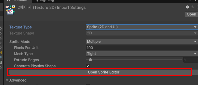 Open Sprite Editor를 눌러서 우측 사진처럼 Slicing을 해주어야