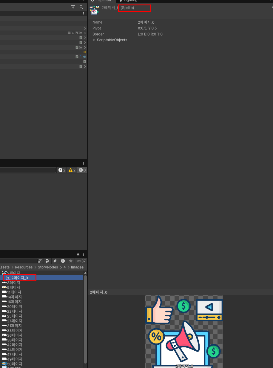 위 사진 처럼 Sprite로 사용할 수 있게 됩니다.