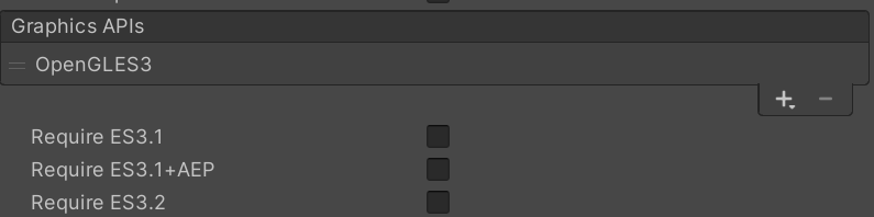 그러면 Unity에서 알아서 런타임 시 가장 최근 버전의 Open GLES버전을 사용하게 될 것이다!