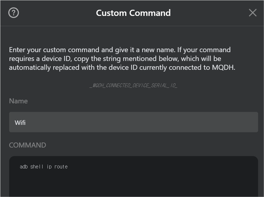 이제 하단 부분에 있는 Custom Commands을 이용해서 ADB를 추가하겠습니다.