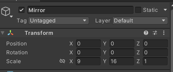 스케일(Size : x , y)을 9: 16으로 설정해 주고 Scale을 줄여줍니다.