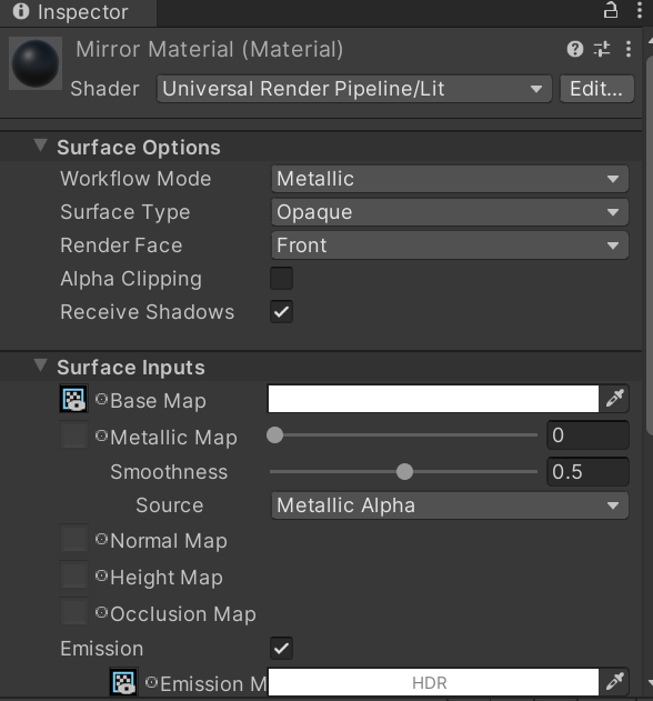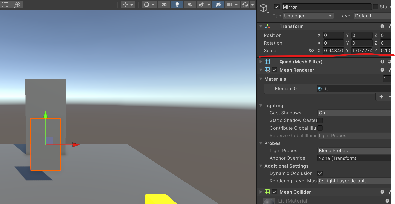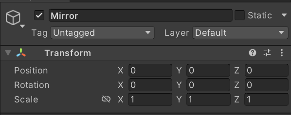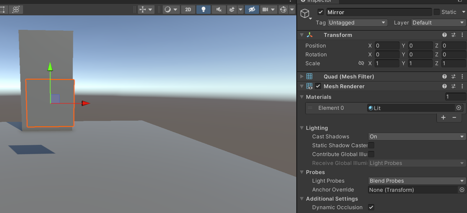 이때 카메라의 바라보는 방향은 거울이 비출 배경을 바라보고 있어야 합니다.