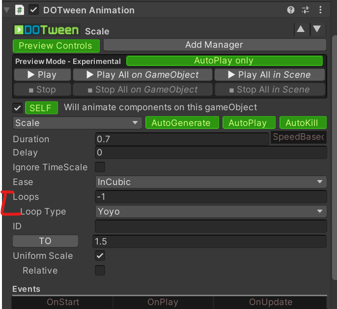 AutoPlay 같은 경우 게임이 실행되면 자동으로 DOTween Animation컴포넌트를 실행시켜 주는 트리거이며