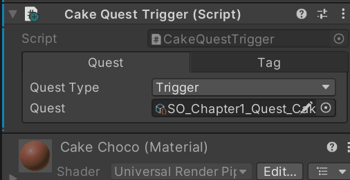 위 예제에서는 QuestTypeEnum이 Destroy일 때 CompareTag 변수를 숨기기 위해 QuestTypeEnum.destroy를 적었습니다.