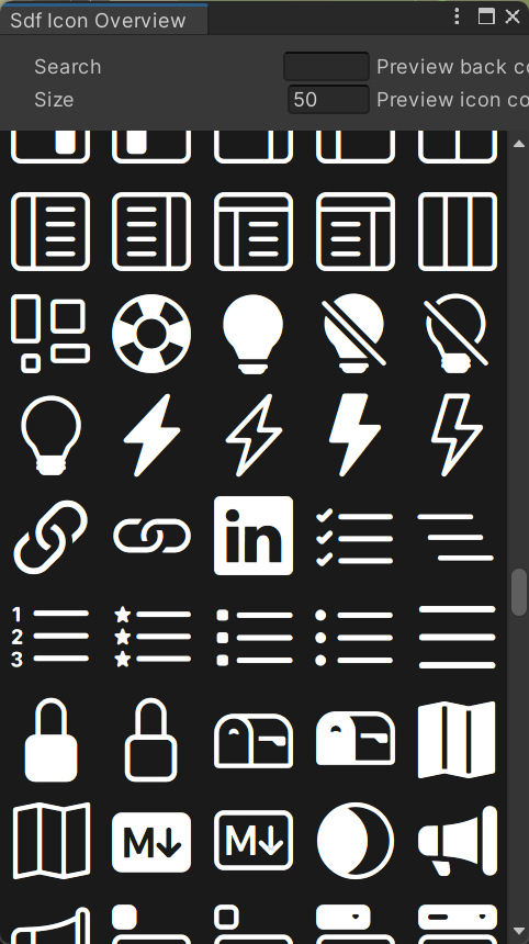 오딘 인스펙터에는 Sdf Icon Overview를 제공하여 인스펙터에 원하는 아이콘을 적용할 수 있습니다.