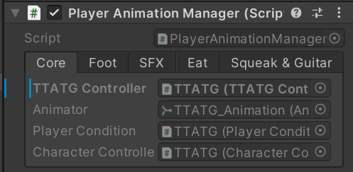 위 코드에서는 TabGroup의 이름을 SFX로 지어주었으며 TabGroup으로 묶어주고자 한 변수들에 모두 [TabGroup("SFX")] 속성을 적어주었습니다.