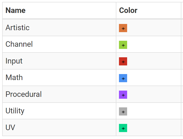 어두운 색상의 노드는 쉐이더의 전체 GPU 성능 비용이 적게 드는 것을 뜻하며, 밝은 색상의 노드는 GPU 계산을 더 많이 하는 것을 뜻합니.